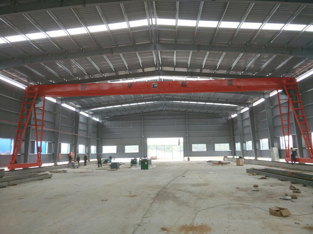 起重機(jī)門架由主梁、地梁、支腿、梯子平臺等部分組成。 主梁是葫蘆式起重機(jī)的主要承載構(gòu)件,同時又是懸掛電動葫蘆的運(yùn)行軌道。主梁由角鋼等型鋼焊接的支撐架與工字鋼組焊成三角形梁。主梁按要求制做成上拱形,電動葫蘆小車在工字鋼翼緣上運(yùn)行。當(dāng)額定起重量和葫蘆自重位于跨中時引起的下?lián)喜坏玫陀谒骄€,正常工作時無永久變形。主梁跨度位置兩側(cè)設(shè)計有與支腿連接的馬鞍座,并有矩形鋼板連接法蘭。地梁是支承主梁和載荷的基礎(chǔ),同時也是主梁與運(yùn)行機(jī)構(gòu)的紐帶,是合肥起重機(jī)金屬結(jié)構(gòu)的主要承載構(gòu)件之一,主要由角鋼焊接而成,地梁端部設(shè)有緩沖器。